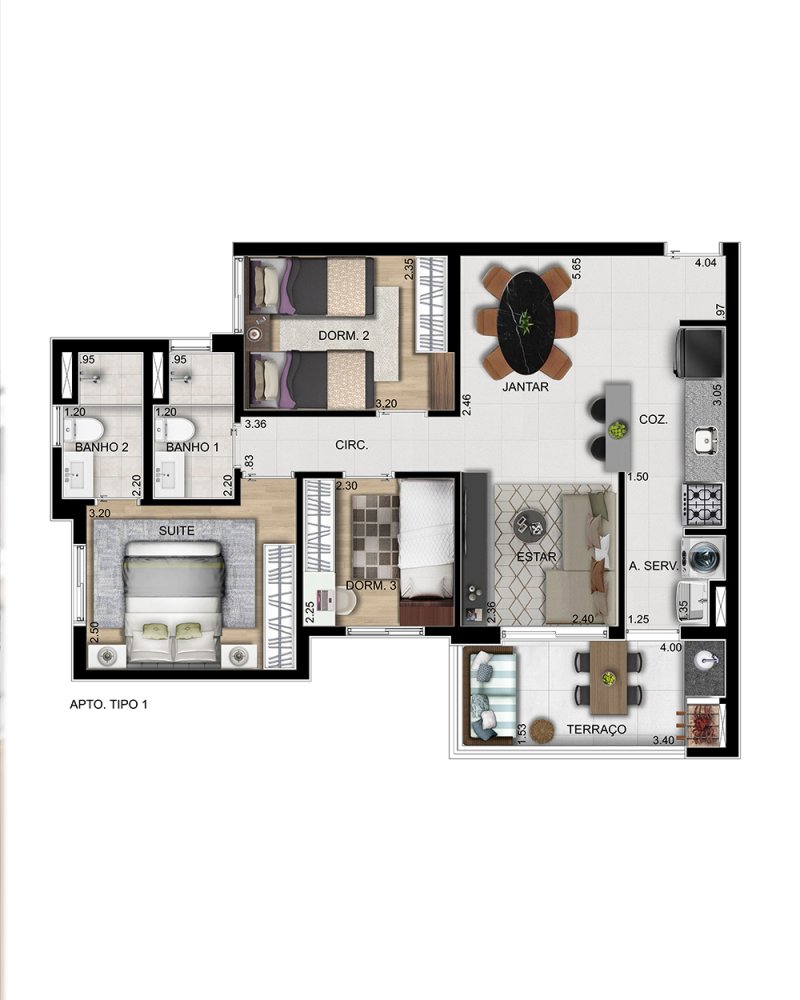Área Privativa: 61,43 m²Localização