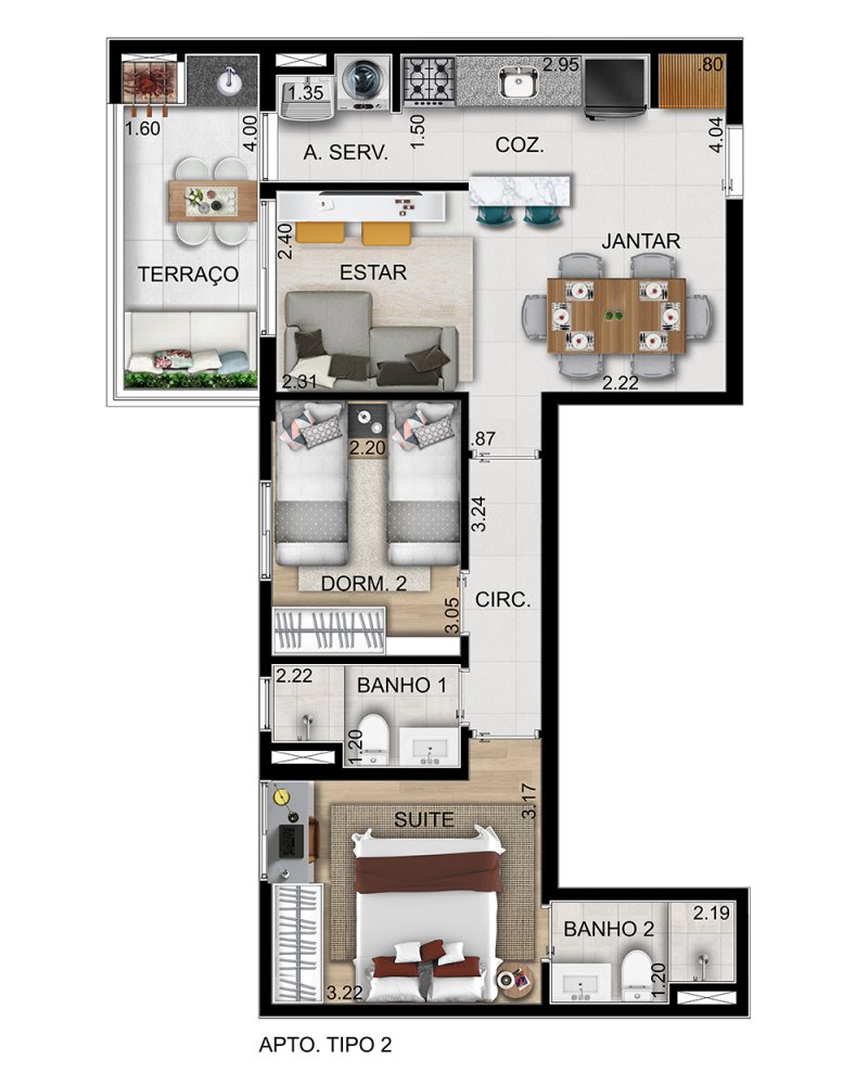 - 2 dormitórios